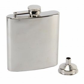 Hip Flask 6oz + Funnel Plain Shiny Silver
