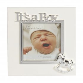 Bambino MDF Round Frame Cream/Epoxy - It's A Boy 4.5 x 4.5"