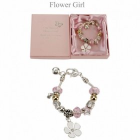 Amore Silver/Pink Bead Charm Bracelet - Flower Girl