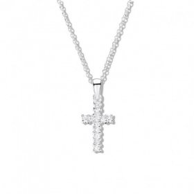 Jo for Girls Sterling Silver and Sparkling Cubic Zirconia Cross Pendant on Chain