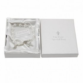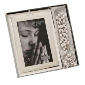 Juliana Silver Plated Photo Frame 4x6" & Rosary Beads