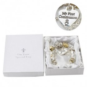Juliana Gold / Silver Charm Bracelet with Heart "1st Communion"