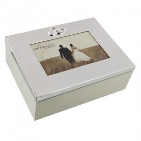 Amore Silver Plated Wedding Keepsake Box with Ring Icons