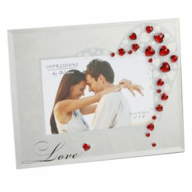 Impressions Glass Photo Frame with Crystals Love 6"x4"
