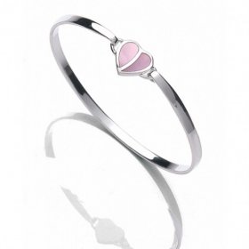 Jo for Girls Pink Mother of Pearl Sterling Silver Heart Bangle