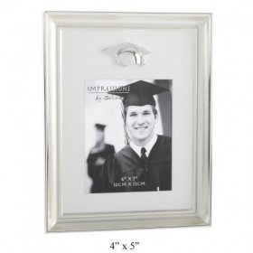 Silver Plated Graduation Frame with Hat Icon 4" x 5"