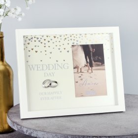 Amore Silver Plated Frame Debossed Words 5" x 7" Wedding Day