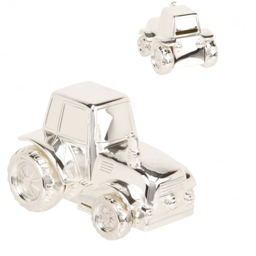 This Silver Plated Tractor Money Box is a great fun place for a little boy to save his money within.